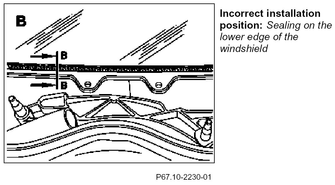SM67.10-P-0003A Check Installation Position Of Sealing On Crossmember Under The Windshield - Model 211.### ## up to 767502