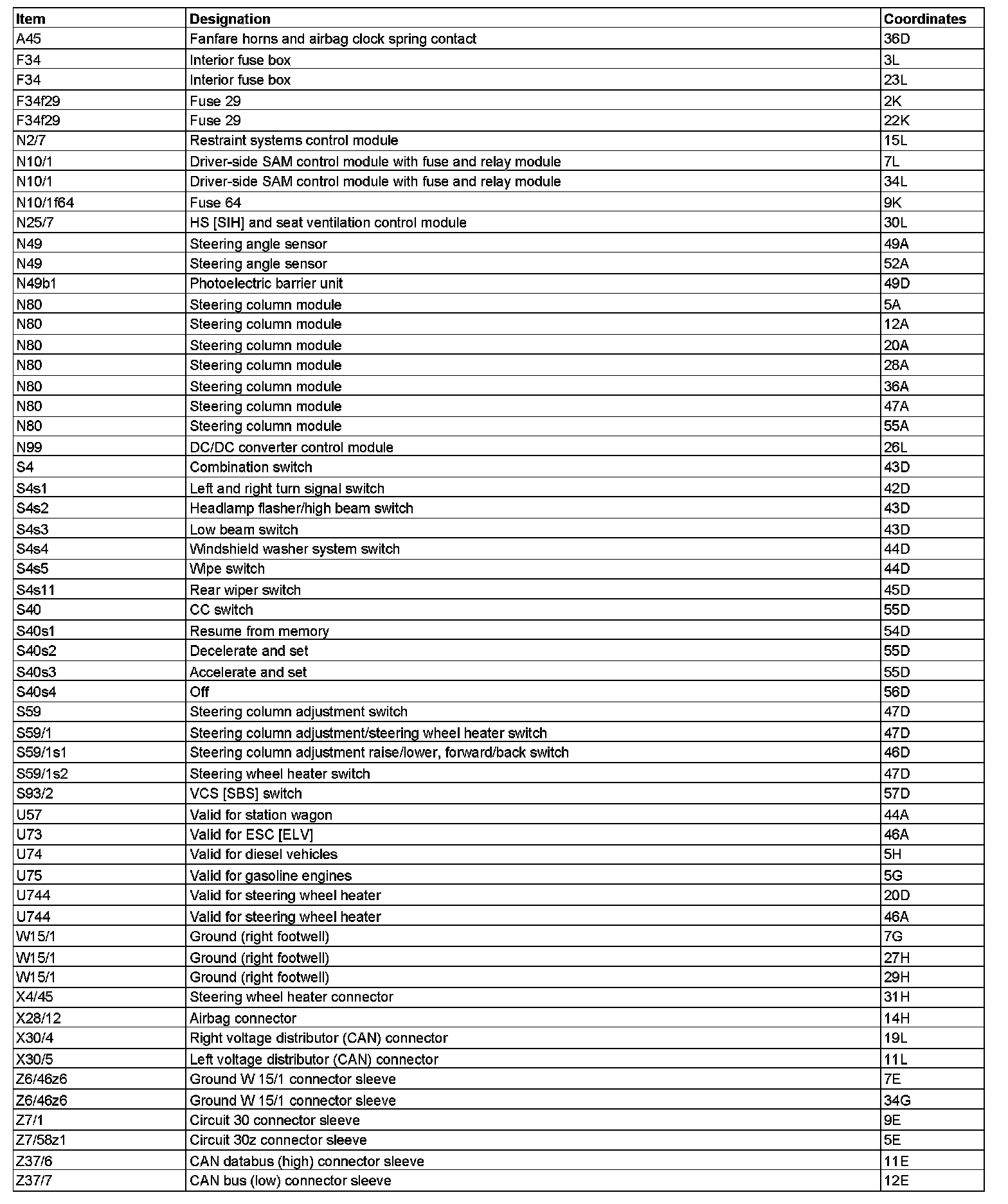 Wiring Diagram Steering Column Module PE46.10-U-2101DA