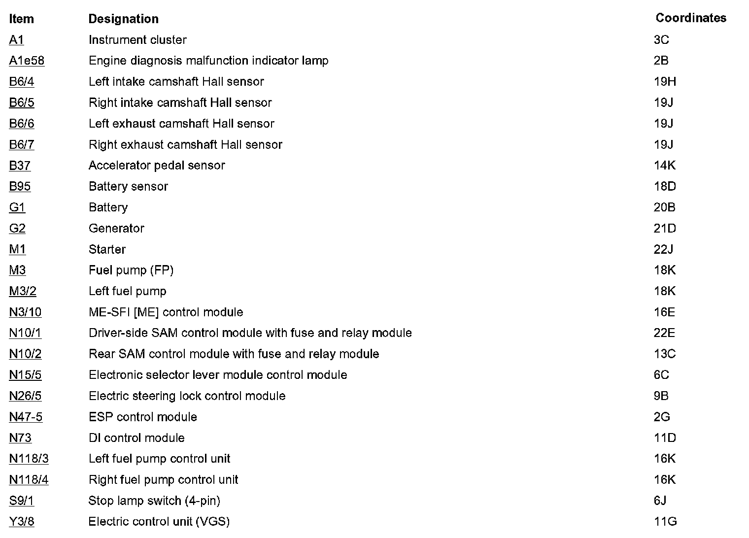 Component Description/Coordinates, A1 To Y3/8: