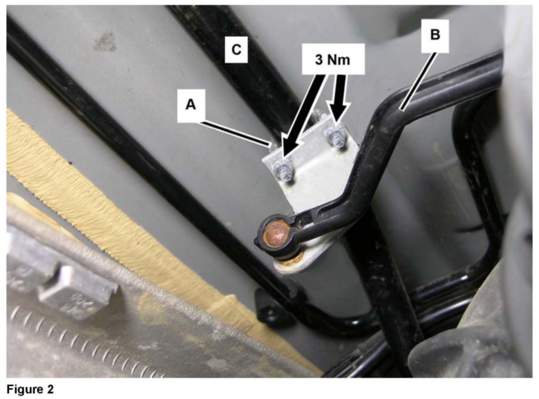Torque new nuts (arrows, Figure 2) to 3 Nm when installing new level linkage assembly (B, Figure 2).