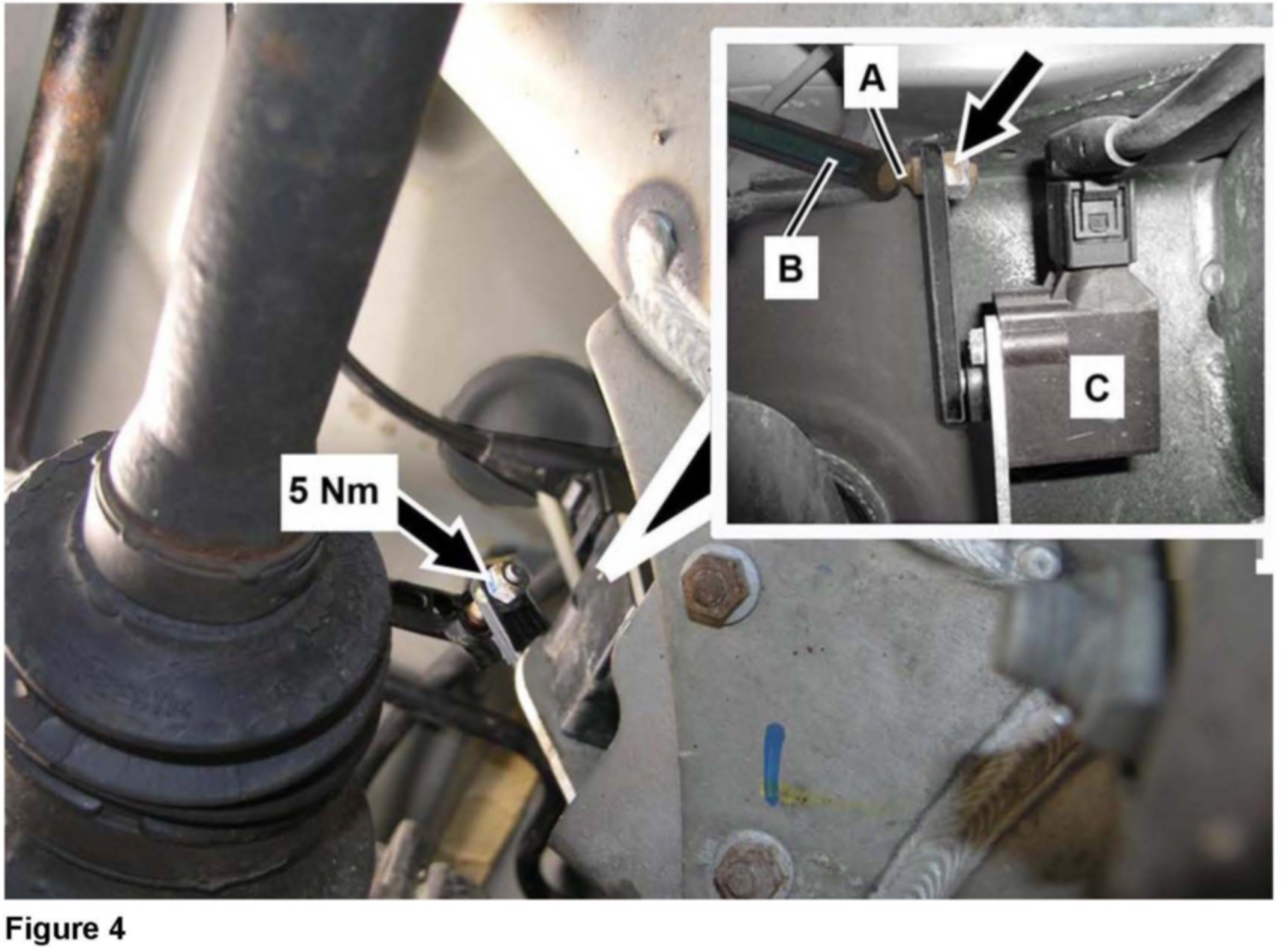 Torque new nut (arrows, Figure 4) to 5 Nm.