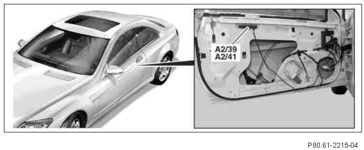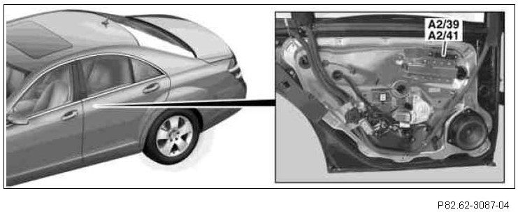 The left rear door Keyless Go antenna and the right rear door Keyless Go antenna are located behind the door trim of the respective rear door.