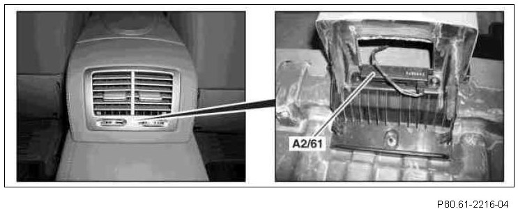 The interior Keyless Go antenna is located under the rear center console in the area of the air outlet vent.