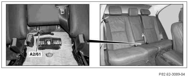 The center console Keyless Go antenna is located under the center console in the area of the turn/push control (A40/9s11).