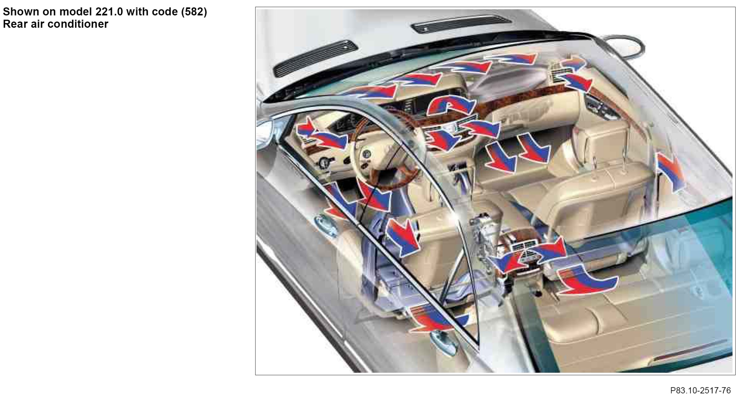 With code (582) Rear air conditioner, ventilation of the rear compartment is achieved with the rear blower motor (M2/1).