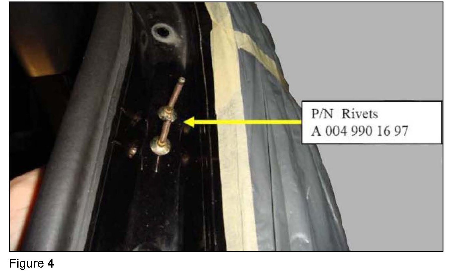 9. Align the new console with marks on the body and fasten the mounting console with two rivets (A004 990 16 97) (Figure 4).