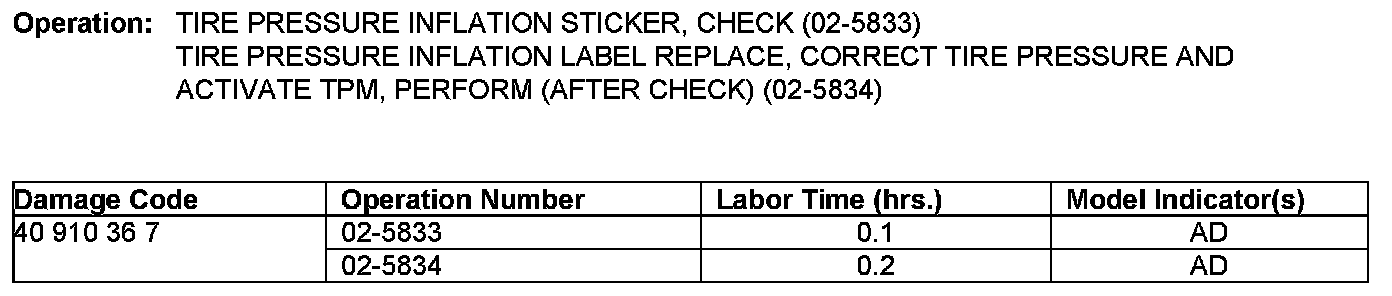 This Service Campaign has been initiated because DCAG has determined that on the affected vehicles the fuel door tire pressure inflation label may be incorrect. Dealers will check for the correct label and replace as necessary in all affected vehicles at the vehicle's next workshop visit. Additionally, dealers will correct tire pressure if necessary and reactivate the tire pressure monitor.