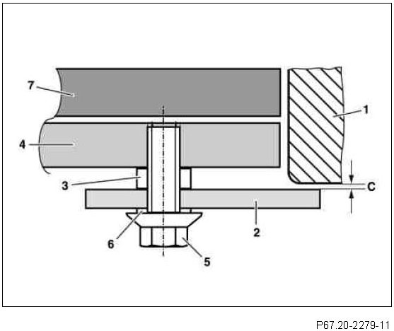 Use only bolts (5) and spacer washers (3) approved in the "Electronic Part Catalog". Otherwise, the designed protective effect is not ensured.