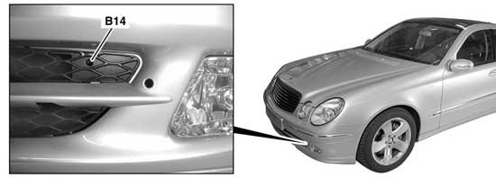 - B14 (Ambient temperature display temperature sensor):Warning! Communication with ECU required.