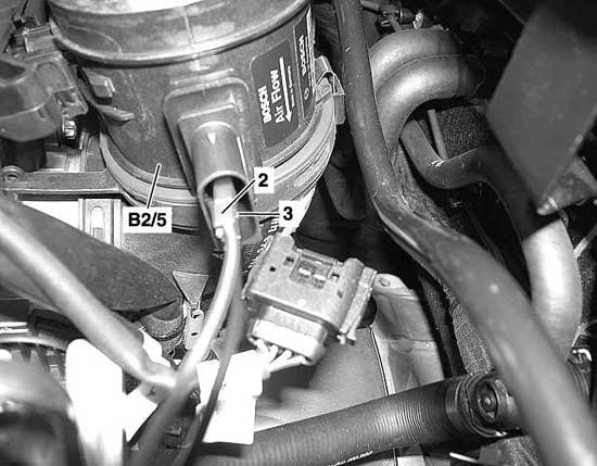 - Detach coupling at component B2/5 (Hot film mass air flow sensor).