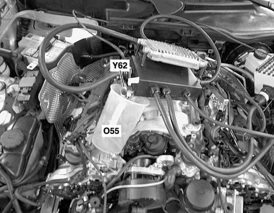 - Hold component Y62 (Fuel injectors) in a vessel and briefly operate manually with shop-made test cable set at sockets 5 and 9 of the 35-pin socket box.