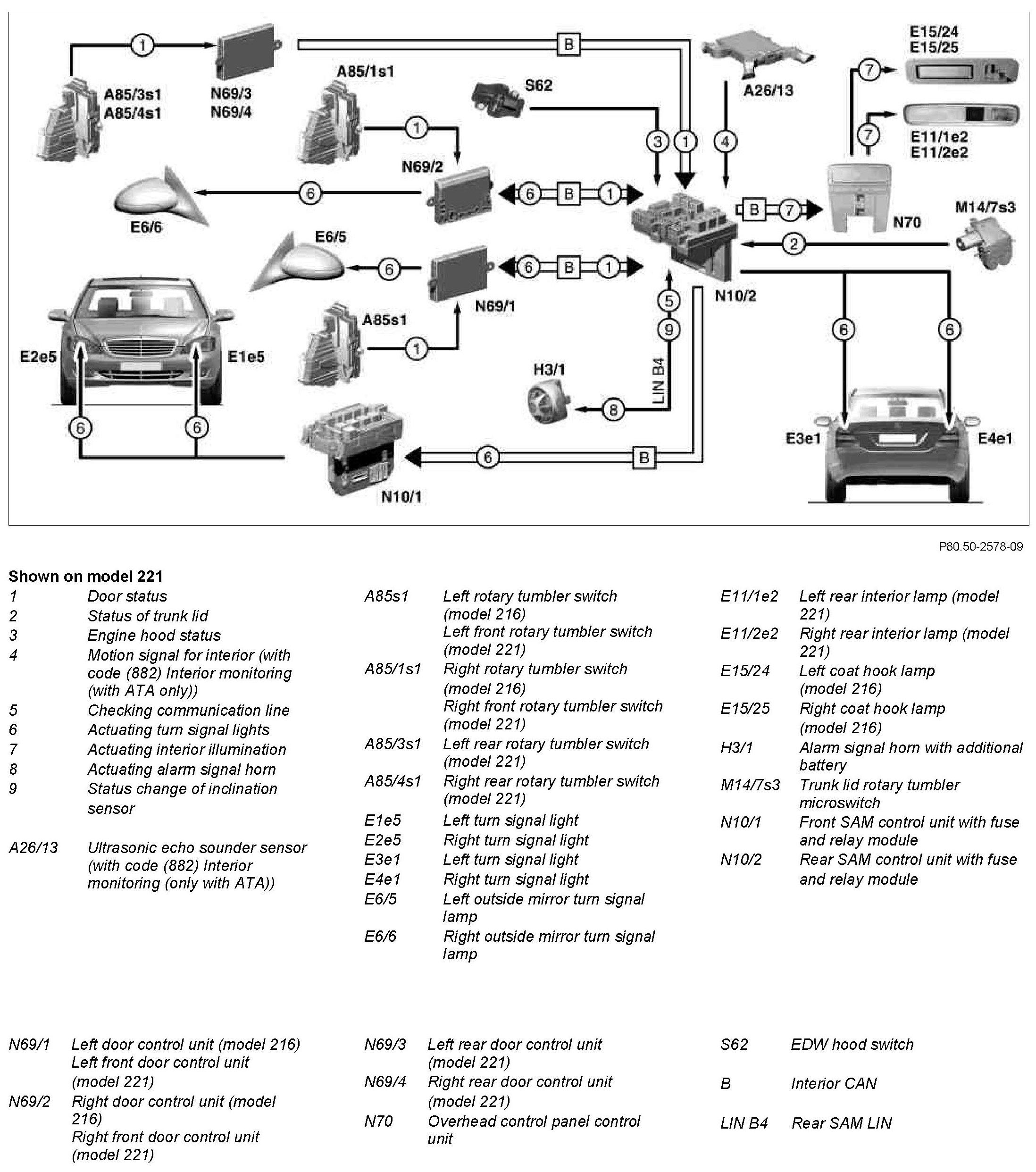 The rear SAM control unit checks with the inclination sensor integrated into the alarm siren the vehicle inclination a number of times each second.