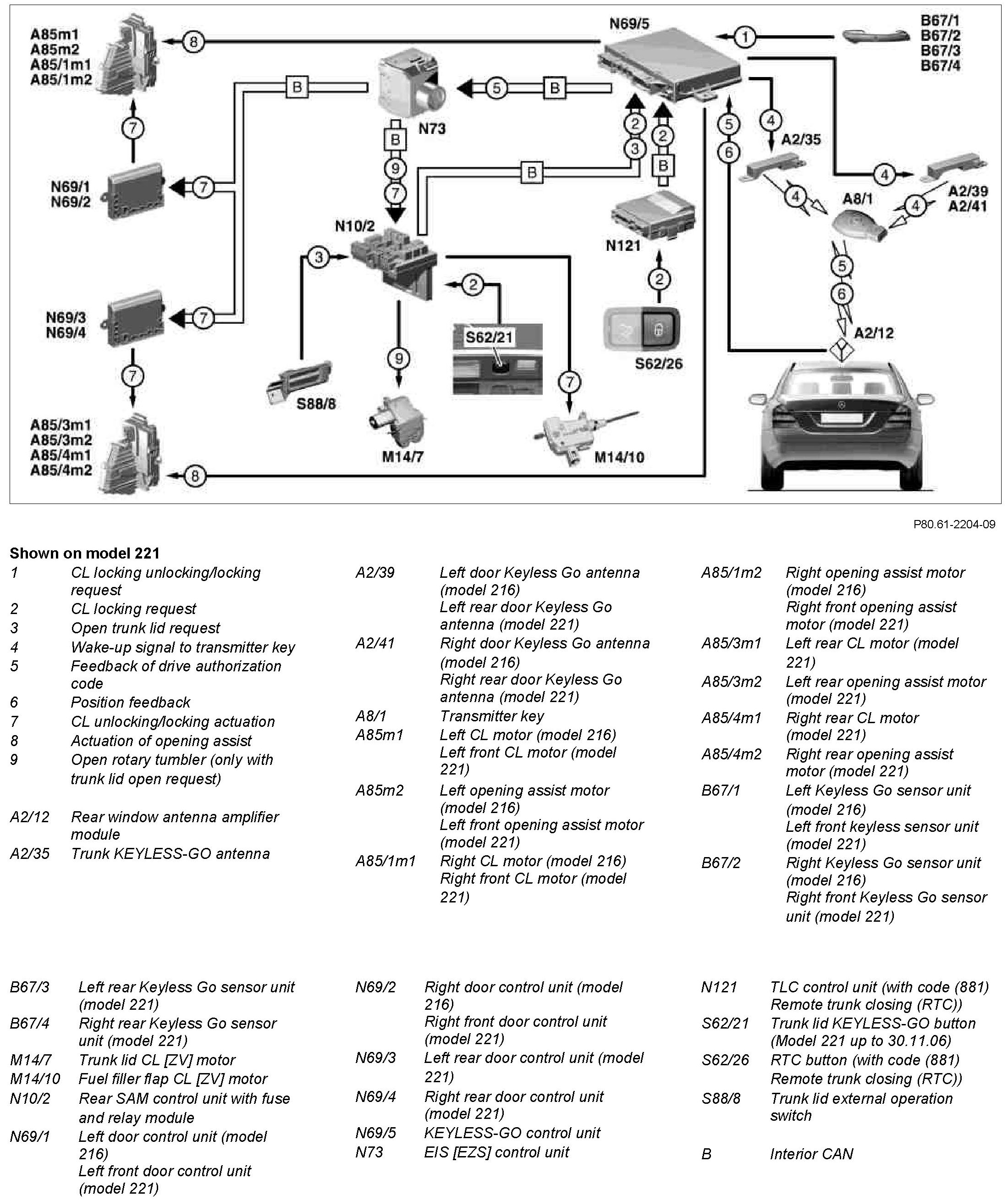 Locking function via trunk lid KG button (Model 221 up to 30.11.06)