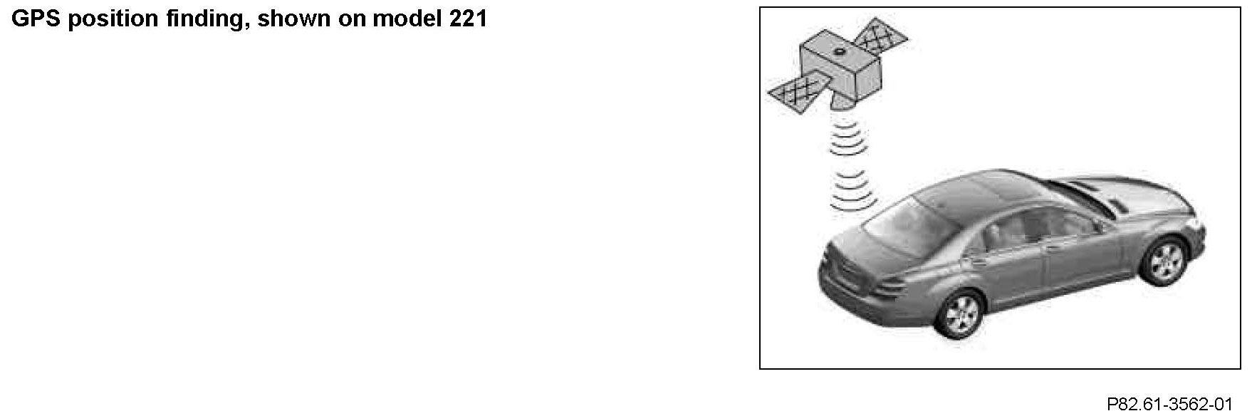 The integrated navigation processor of the COMAND controller unit calculates the vehicle location and the accuracy of the position finding based on the satellite signals received and amplified by the telephone and GPS roof antenna (A2/49) (model 221) or by the telephone and GPS antenna (A2/49) (model 216).