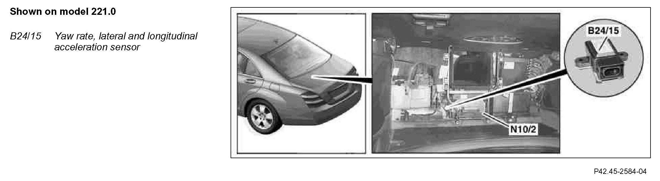 The turn rate, lateral and longitudinal acceleration sensor is located in the luggage compartment, in the center at the partition wall to the passenger compartment.