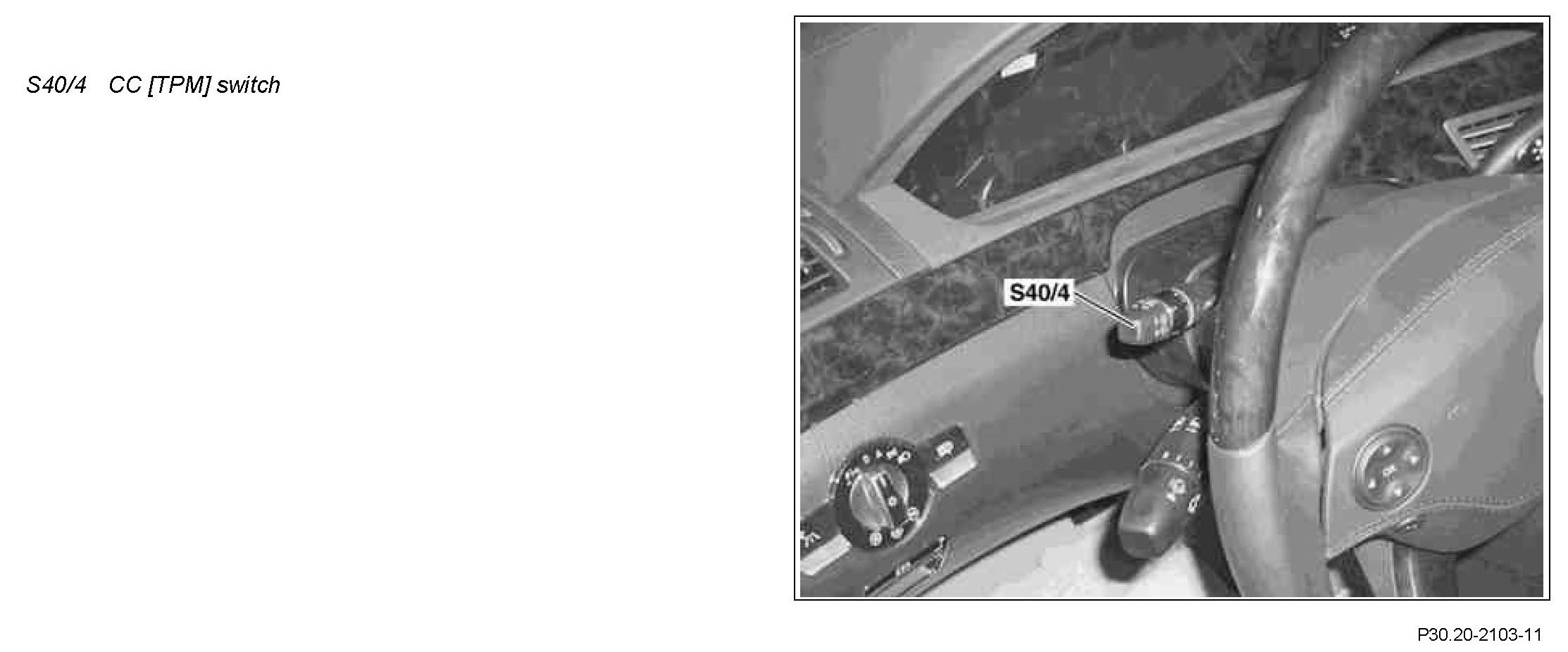 The CC [TPM] switch is located at the top left of the steering column.
