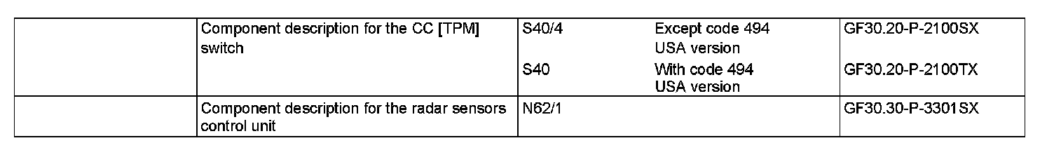 The Permanent Speed Limiter function is integrated in the radar sensors control unit (SGR) (N62/1).