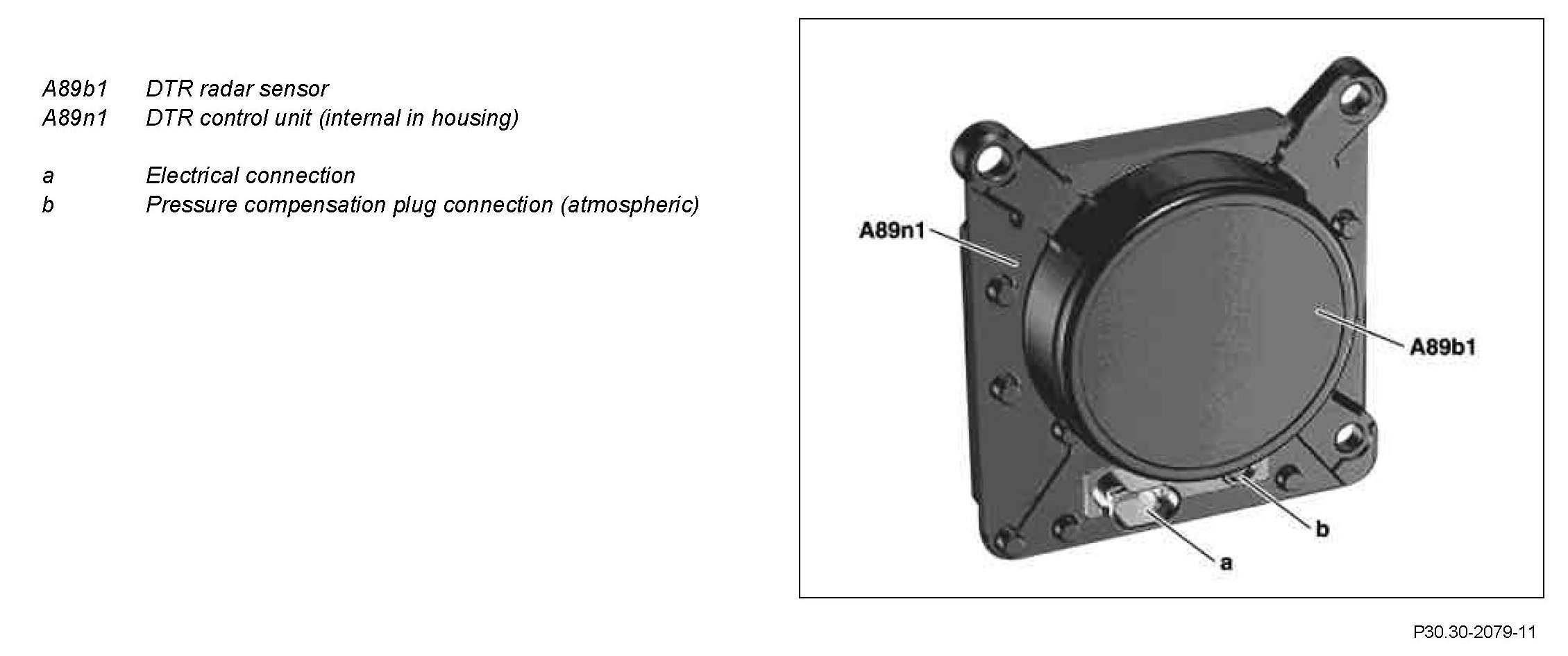 ^ Actuation, supply and evaluation of the signals received by the integrated DTR radar sensor (A89b1)