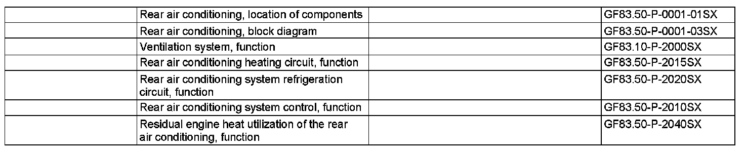 The function of the rear air conditioning can be summarized under the following list of subfunctions.