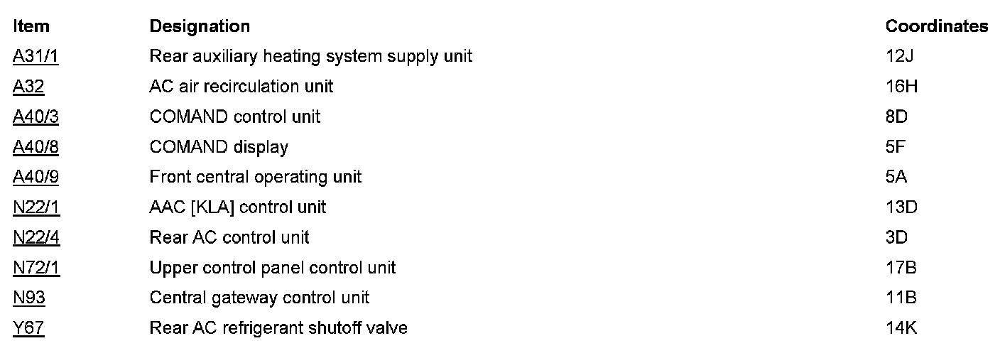 PE83.50-U-2050SAA Electrical Function Diagram For Rear Air Conditioning