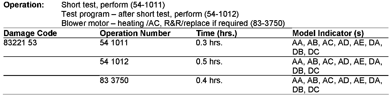 5. If the blower cannot be started by hitting the housing but the results from testing in Step 1 are within specifications, replace the blower motor. Refer to WIS document AR83.10-P-1100SX.