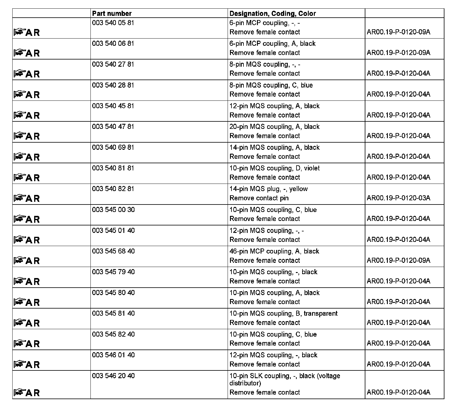 GF00.19-P-8100AD Connector Part Numbers