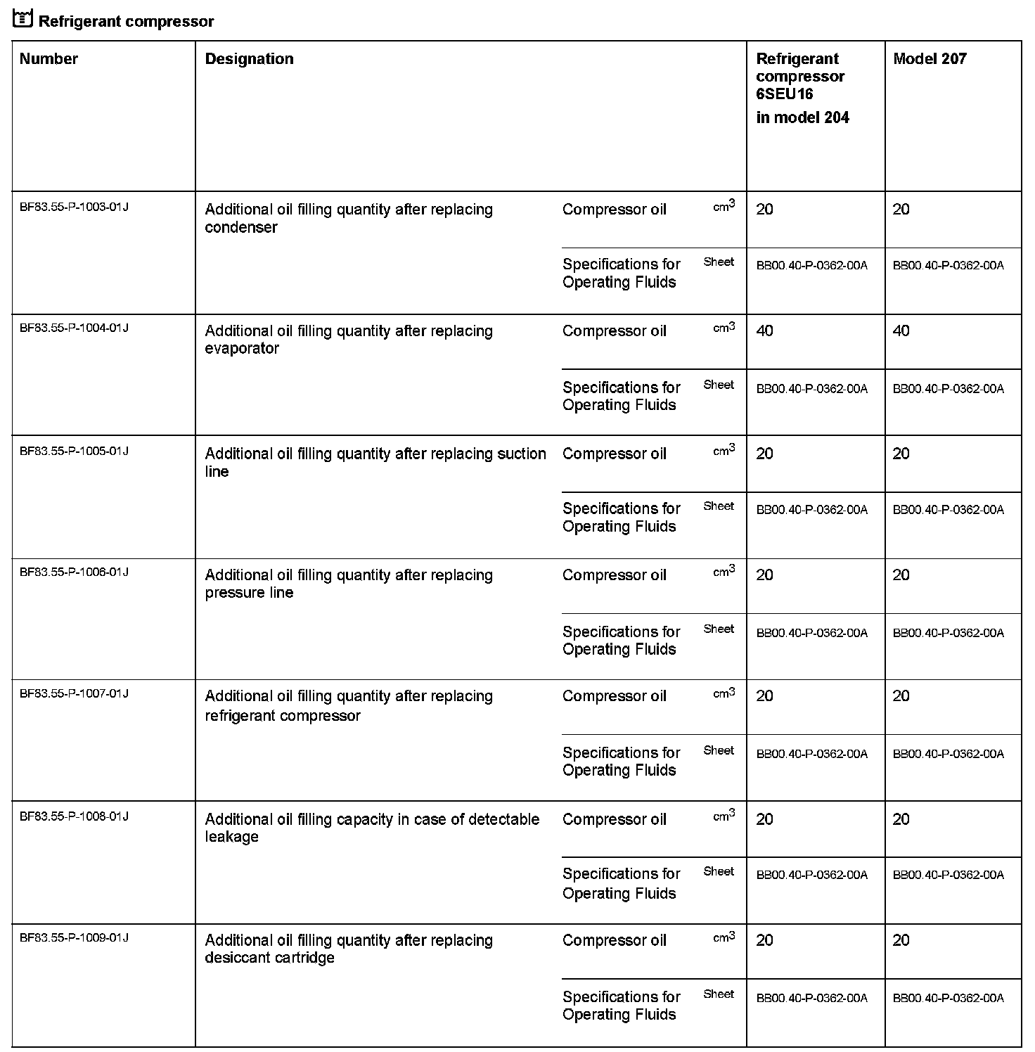 AR83.30-P-5252PB Correct Oil Level In Air Conditioning System After Replacing Parts