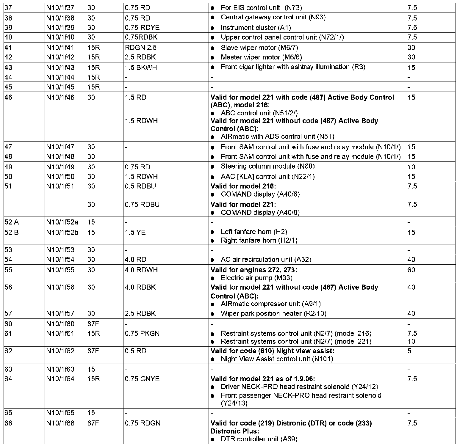 GF54.15-P-1256-03SX Fuse Assignment of Fuse and Relay Box In Left Engine Compartment