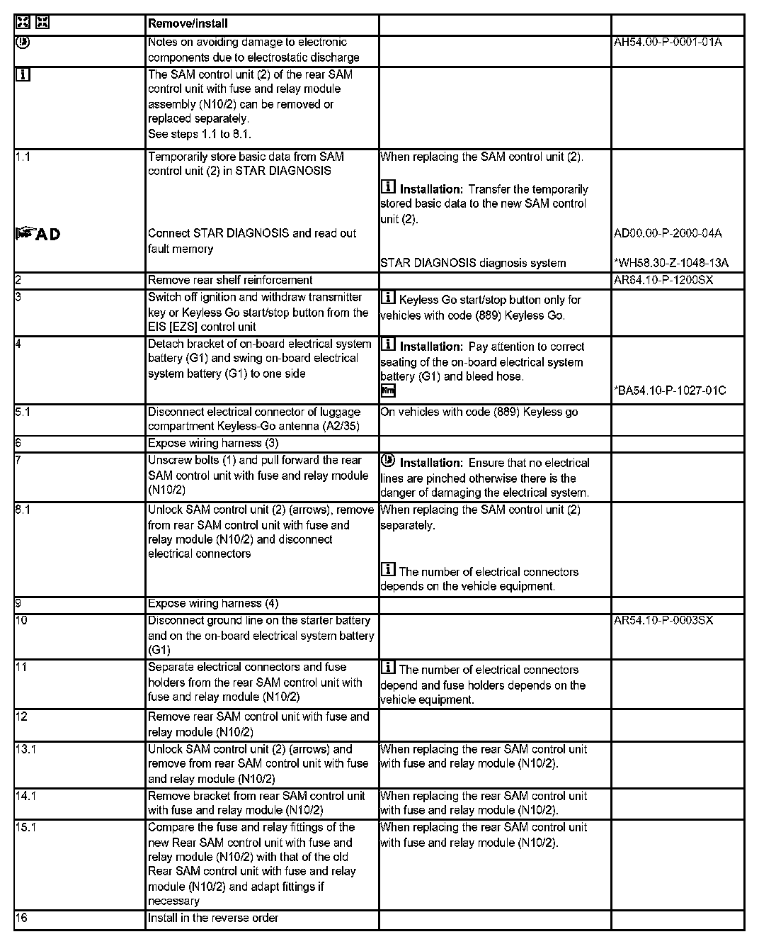 AR54.21-P-1258SX Remove/Install SAM Control Unit With Fuse And Relay Box In Trunk