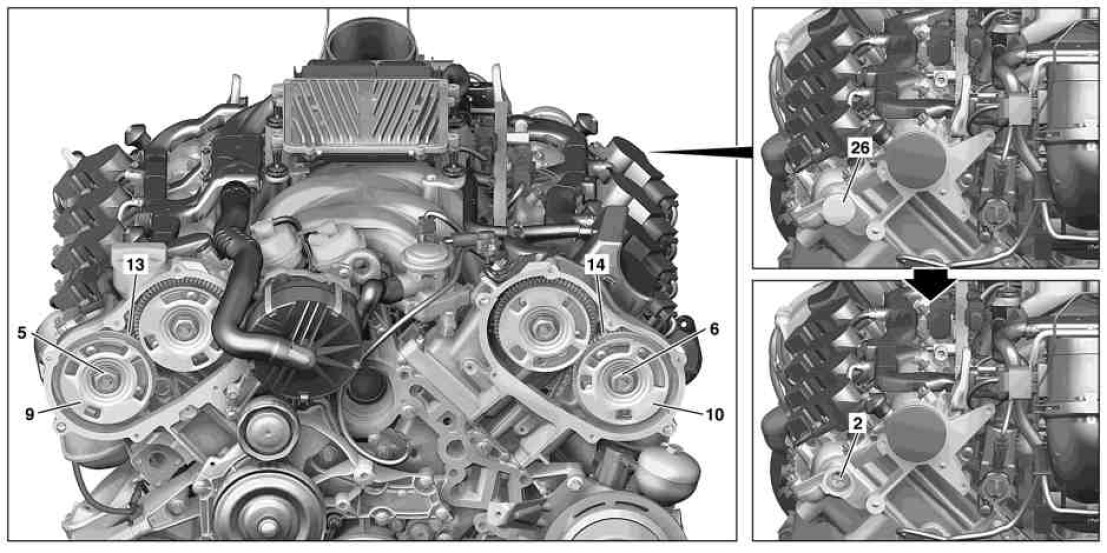 13,14 Camshaft adjuster of exhaust camshaft