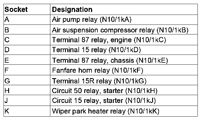 GF54.15-P-1257-03SX Relay Assignment Of Fuse And Relay Box In Left Side Of Engine Compartment
