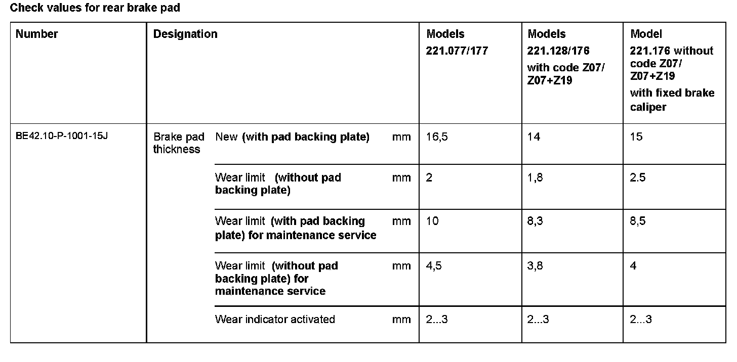 BE42.10-P-1000-15J Check Values For Rear Brake Pad