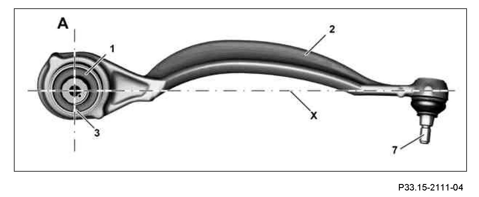 Should the bearing seat have clearly noticeable scores, the torque strut (2) should be replaced