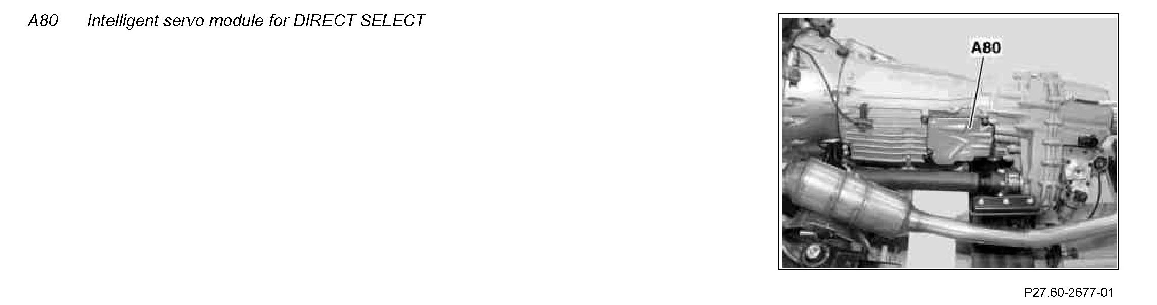 The intelligent servo module for DIRECT SELECT is mounted on the left in the direction of travel on the transmission housing. The intelligent servo module for DIRECT SELECT has an integrated range selector lever and replaces the range selector lever used previously.