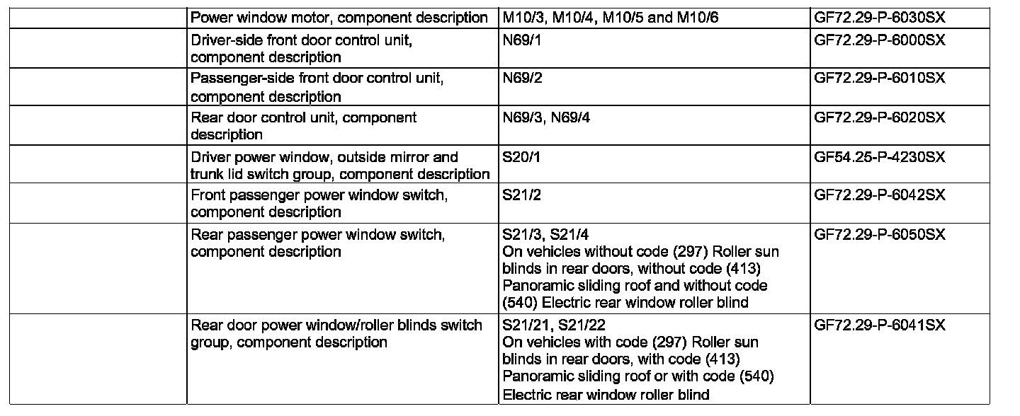 ^ Left rear power window switch (S21/3) and right rear power window switch (S21/4) (without code (297) Roller sun blinds in rear doors, without code (413) Panoramic sliding roof and without code (540) Electric rear window roller blind)