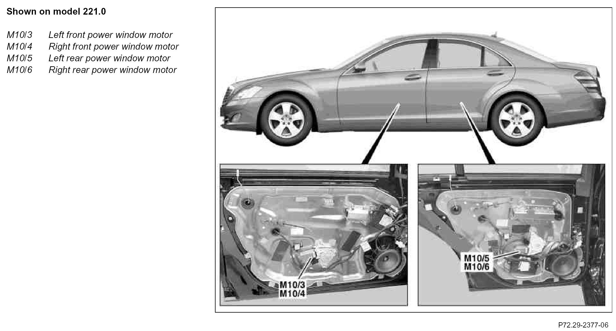 The power window motors serve for opening and closing the front and rear side windows.