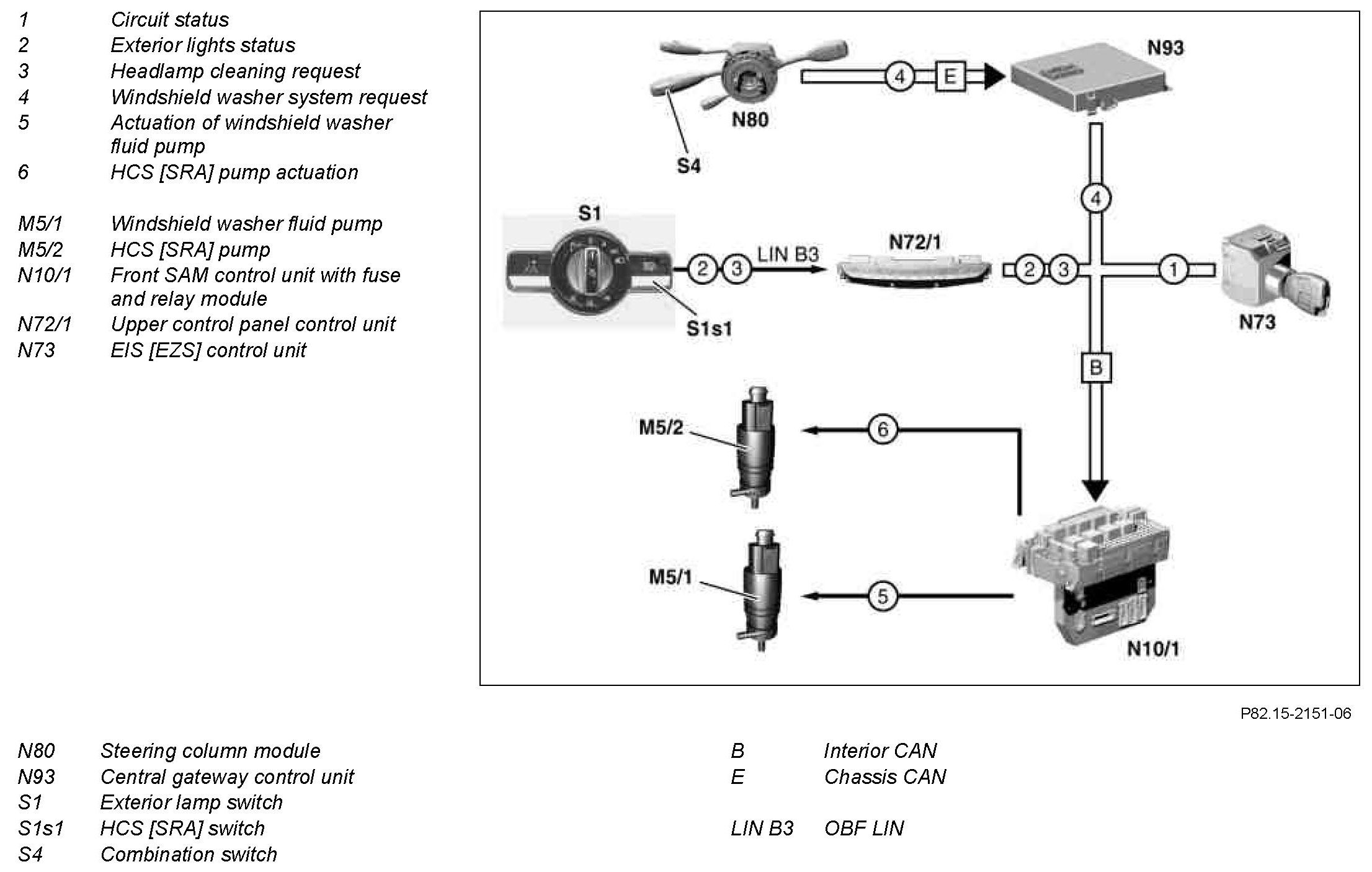 The HCS [SRA] pump is automatically actuated after 15 operations of the windshield washer system and with the low beam or the standing lamps switched on. This is performed by the front SAM control unit.