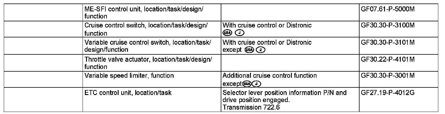 The cruise control function can be activated at speeds above 40 km/h with the cruise control switch. Using the input signals and the position of the cruise control switch, the engine control unit actuates the throttle valve actuator for the cruise control function.