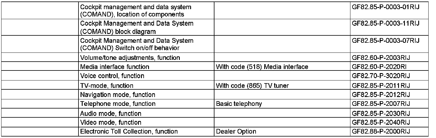 The Cockpit Management and Data System (COMAND) encompasses the entertainment, communication and information system in the vehicle. The COMAND controller unit contains the following subfunctions, which are described in separate documents: