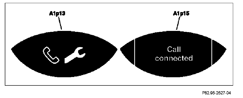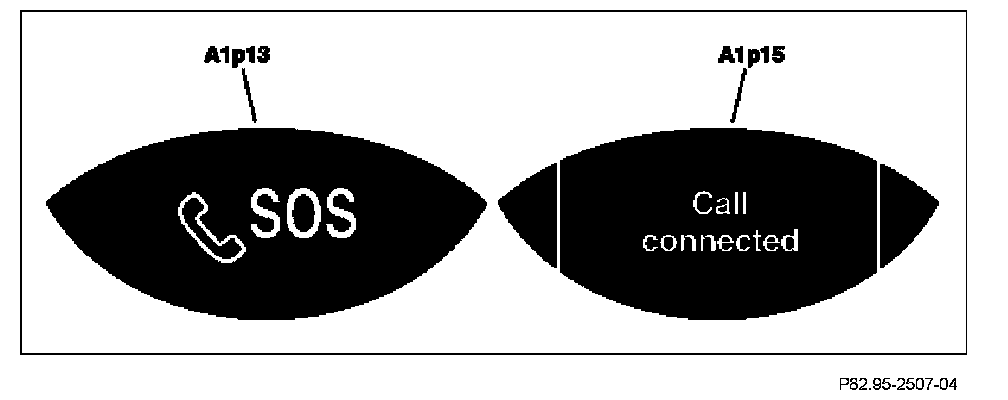 After a TELE AID emergency call has been triggered, the state display for the SOS pushbutton switch (S93/3) flashes with a frequency of one 1 Hz. In addition, a status message appears on the left multifunction display (A1p13) and on the right multifunction display (A1p15) in the instrument cluster (A1).