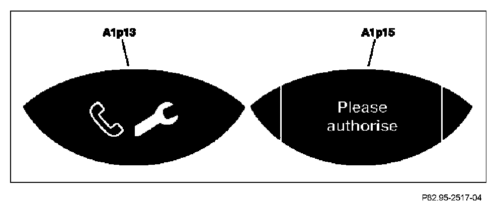 The emergency call system control unit (N123/4) can be coded by means of STAR DIAGNOSIS so that even if there is no authorization, the state and error displays for the TELE AID system will not illuminate or be displayed on the left multifunction display (A1p13) and on the right multifunction display (A1p15) in the instrument cluster (A1). The dealer has the deactivation of the state display confirmed by the customer in writing using a preprinted form.