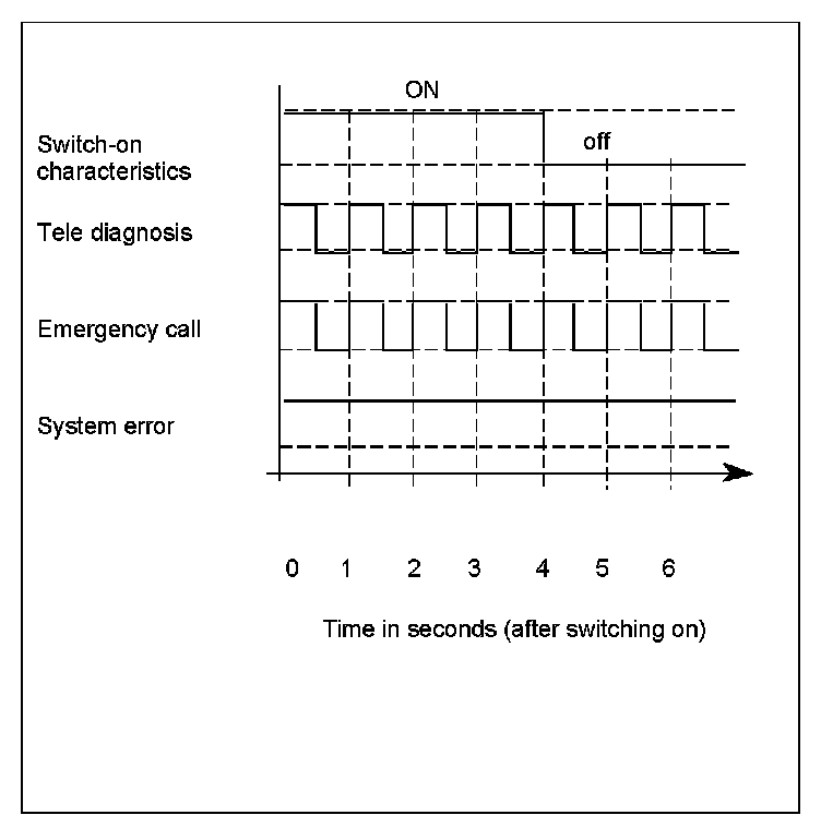 Every time the TELE AID system is switched on, the state display for the SOS pushbutton switch (S93/3) signals system readiness by illuminating for 4 seconds. If there are no faults, the state display for the SOS pushbutton switch (S93/3) goes out after 4 seconds.