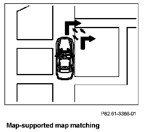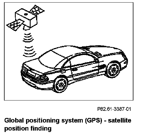 Continuous location finding means that the current position of the vehicle is calculated. It is active when the ignition is switched on and performed by the navigation processor in the COMAND operating, display and control unit (A40/3). During the switch-on phase (software is loaded), only the basic position finding (composite positioning) is available. After switching the ignition off, all important positioning parameters are stored for the duration of the run-on time (approx. 30 min.). If the run-on time has expired, the COMAND operating, display and control unit (A40/3) switches itself completely off.