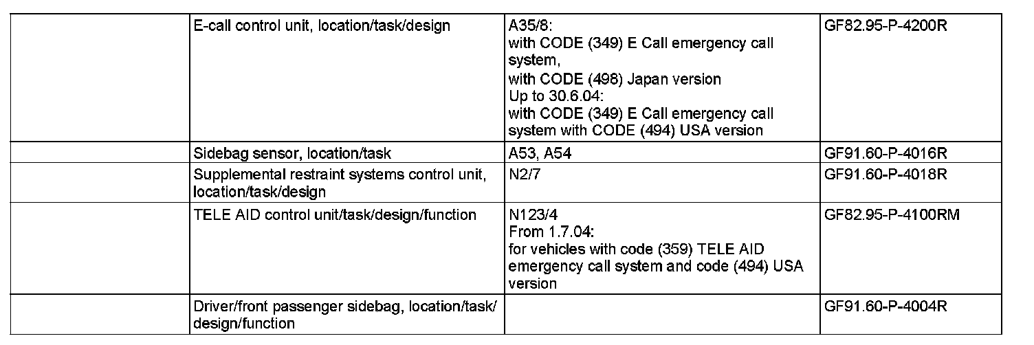 ^ from 1.7.04: Emergency call system control unit (N123/4) (for code (359) TELE AID emergency call system)