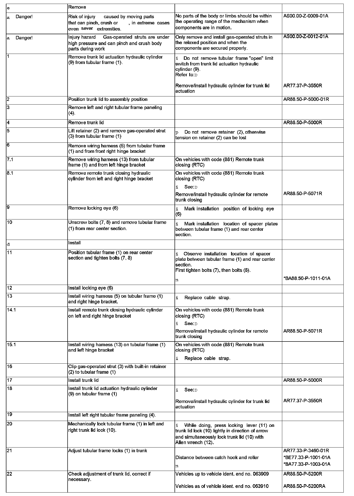 AR88.50-P-5100R Remove/Install Tubular Frame For Trunk Lid