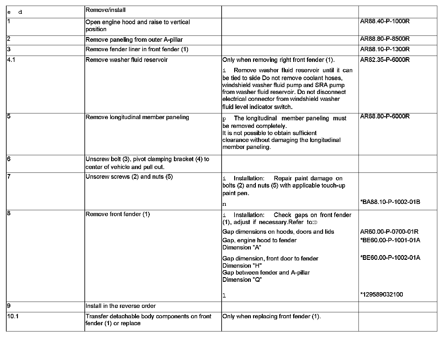 Test And Adjustment Values, Gap Dimensions At Hoods, Doors And Covers: