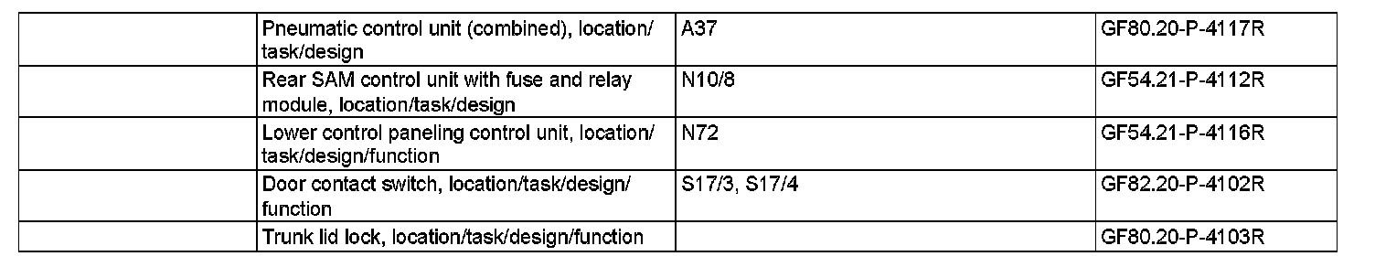 The vehicle can be unlocked with the 'unlock CL [SV]' interior switch in the hazard warning flasher and CL [SV] switch group. This does not activate or deactivate the anti-theft alarm (ATA). The signals are read out by the lower control panel control unit. The status of the doors and the trunk lid is evaluated by the rear SAM control unit via the door contact switch and the locking pawl rotary tumbler switch.