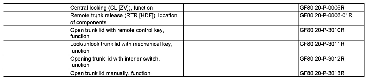 Whether these functions can be used to open the trunk lid depends on the state of the central locking system. Irrespective of this, the trunk lid can be locked and unlocked with the mechanical key and, consequently, can be opened separately without changing the CL status