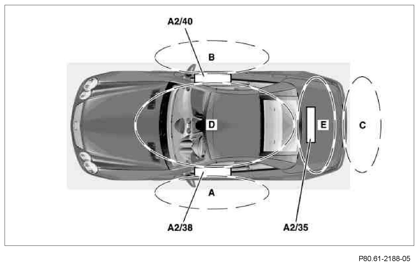 ^ The vehicle interior area (D) is covered by the left door Keyless Go antenna and the right door Keyless Go antenna.