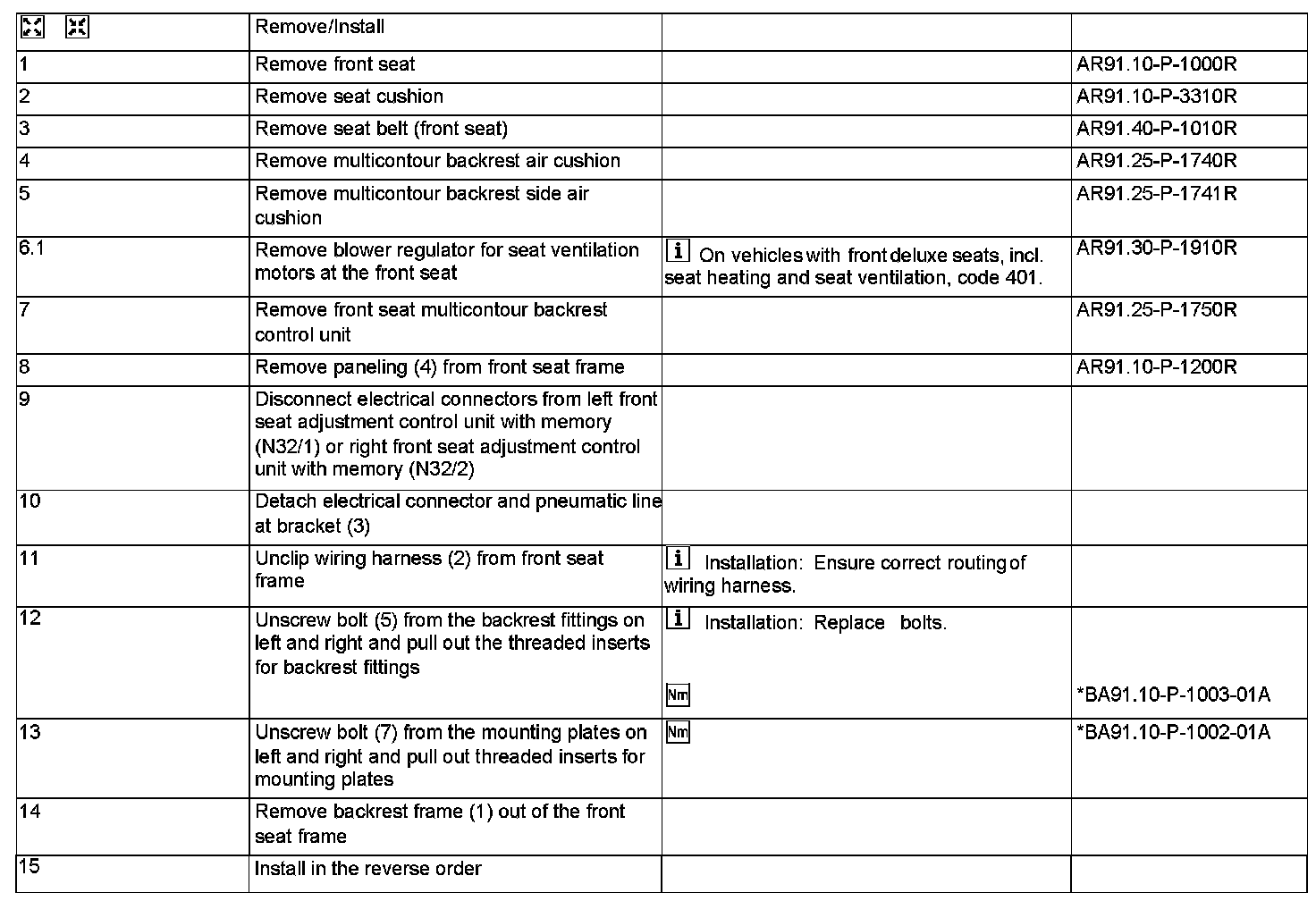 AR91.10-P-3331R Remove/Install Front Seat Backrest